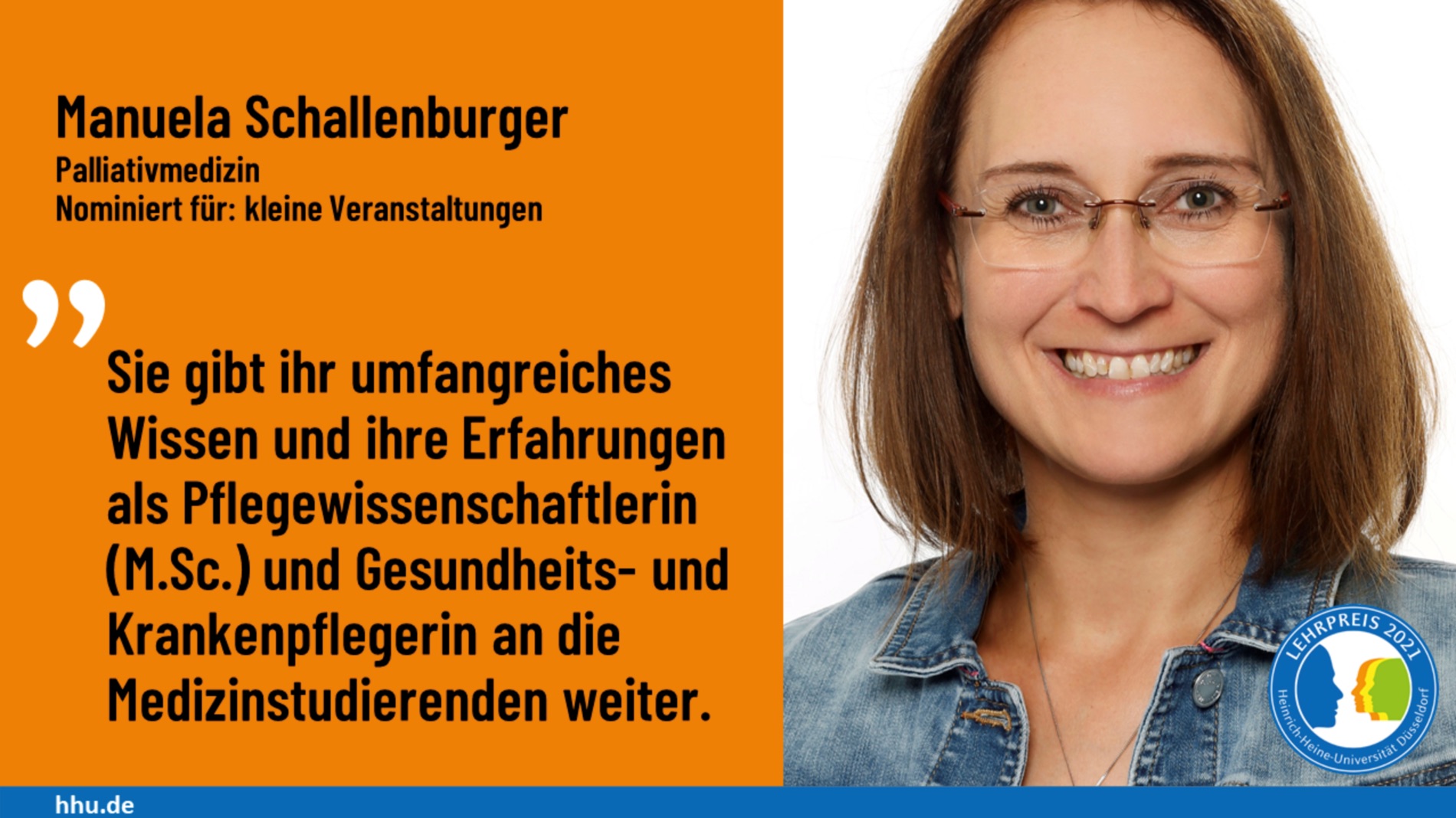 Die Deutsche Gesellschaft für Palliativmedizin hat im Rahmen der 6. Online-Mitgliedertage am 27.09. den Anerkennungs- und Förderpreis für Wissenschaft in der Palliativversorgung vergeben. Der erste Preis ging dabei unter anderem an ein Team der Heinrich-Heine-Universität Düsseldorf (HHU) und dem Universitätsklinikum Düsseldorf (UKD). Das Team von Prof. Dr. Martin Neukirchen (Leitender Arzt des Interdisziplinären Zentrums für Palliativmedizin, IZP). wurde für eine Studie, die Trigger für Pflegekräfte identifizieren sollte, um Intensivpatienten mit Palliativbedarf zu identifizieren, ausgezeichnet. Die Studie entstand unter der Leitung und in Zusammenarbeit mit der Flensburger Professorin für Pflege Prof. Dr. Manuela Schallenburger (Hochschule Flensburg, ehemals IZP).