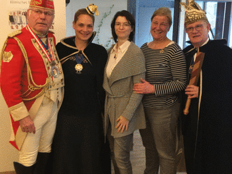 Am 5.2.2018 besuchte das Grafenpaar der Karnevalsgesellschaft Gerresheimer Bürgerwehr 1956 e. V. die Palliativstation. Rolf Müller, langjähriger 1. Vorsitzender der Gerresheimer Bürgerwehr und Ehrenvorsitzender, hat sich für die Wiederbelebung dieser alten Gerresheimer Tradition in der aktuellen Karnevalssession 2017/2018 eingesetzt. Mit Eva Hlouschek als Gräfin von Quad an seiner Seite bilden beide ein tolles Grafenpaar. Beide besuchten in Begleitung des Geschäfsführers sowohl der Gerresheimer Bürgerwehr, als auch des Fördervereins des Interdisziplinären Zentrums für Palliativmedizin, Wolfgang Seifert, die Palliativstation. Die Gerresheimer Bürgerwehr verkauft aktuell einen Sticker im Rahmen einer wohltätigen Aktion zugunsten unseres Zentrums. Wir bedanken uns sehr herzlich für diesen hohen Besuch und die tolle Aktion.