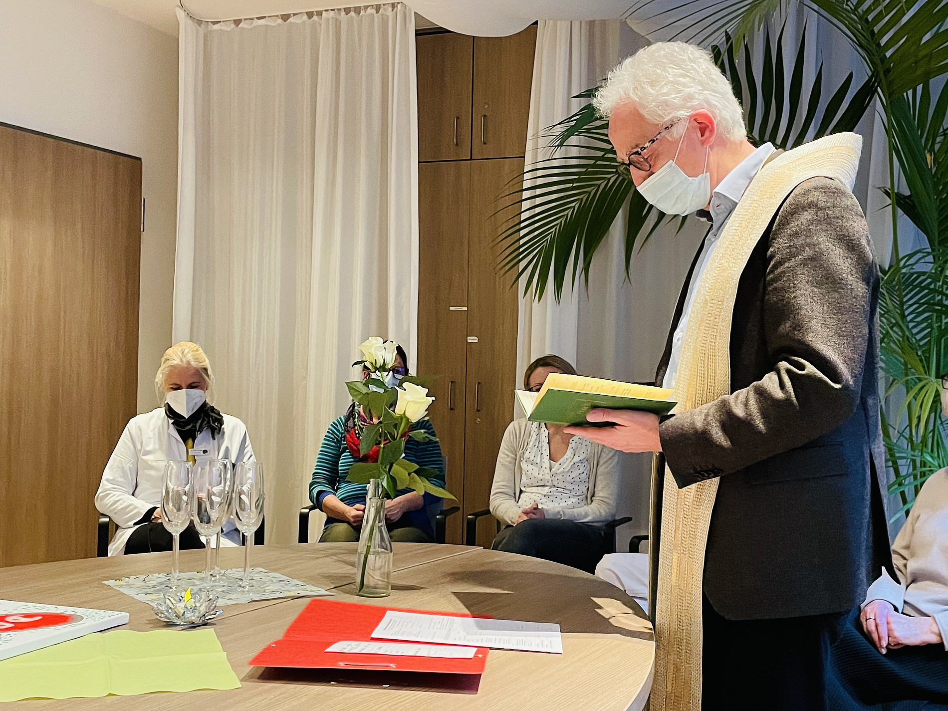 Am 13. November 2016 fand in der Kapelle auf dem Gelände der Uniklinik die Erinnerungsfeier für die auf der Palliativstation verstorbenen Patienten statt. Gestaltet wurde die Feier von der evangelischen und katholischen Klinikseelsorge sowie von den ehrenamtlichen Mitarbeiterinnen und Mitarbeitern unseres Zentrums. Ungefähr 100 An- und Zugehörige kamen in die Kapelle, um an die 130 Verstorbenen zu erinnern. Von den trauernden Angehörigen erhielten wir dankbare Rückmeldungen.