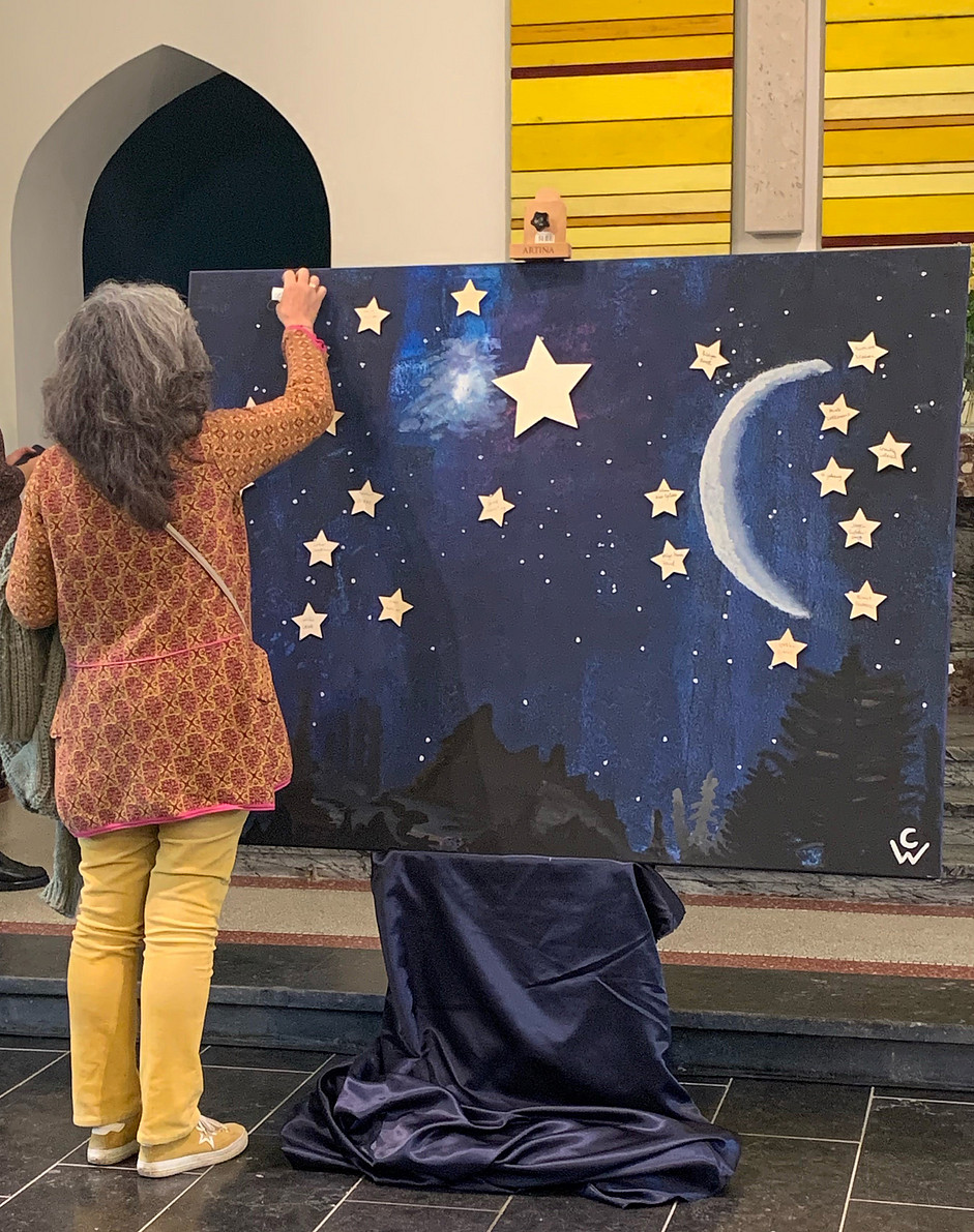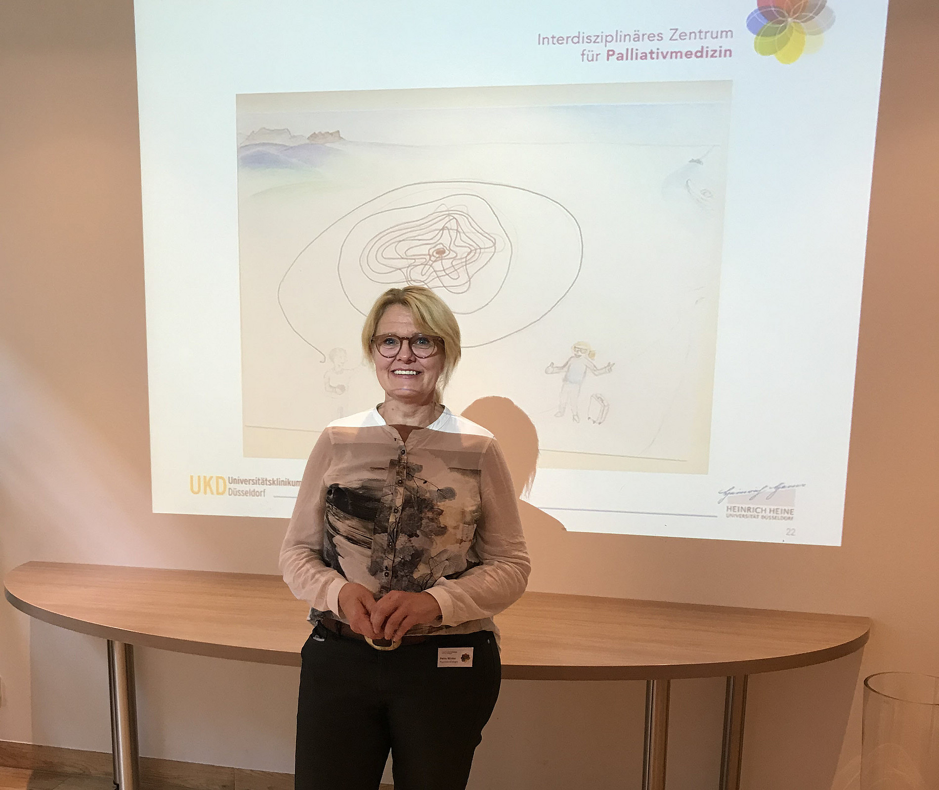 Ein ganz herzliches Dankeschön geht an Stephanie Hartmann, Psychoonkologin und Kunsttherapeutin am Interdisziplinären Zentrum für Palliativmedizin, ohne die das Projekt nicht möglich gewesen wäre und die die existenzgebende Kraft des Projektes hier in Düsseldorf ist.