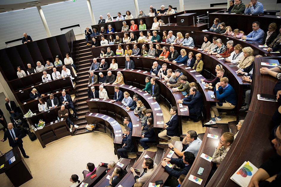 Vollstes Haus am Donnerstag im Großen Hörsaal der Chirurgie Universitätsklinikum Düsseldorf und Heinrich-Heine-Universität Düsseldorf anlässlich der Antrittsvorlesung von Professor Dr. Martin Neukirchen, dem ersten Professor für Palliativmedizin in Düsseldorf. Im Rahmen seiner Antrittsvorlesung mit dem Titel: "Palliativmedizin ist Lebensmedizin - Fürsorge und Selbstbestimmung" berichtete er über das Spannungsfeld zwischen Fürsorge und Selbstbestimmung bei schwerst erkrankten Intensivpatient:innen und bei Palliativpatient:innen mit Sterbewünschen und vielleicht sogar dem Wunsch nach Suizidassistenz. Selbstbestimmung und Fürsorge spielen aber auch nicht selten in humorvollen Todesanzeigen eine Rolle. Im Anschluss gab es bewegende Worte und Glückwünsche aus der Familie, sowie dem Freundes- und Kolleg:innenkreis. Neben Professor Neukirchens Bruder, Professor Dr. Christoph Neukirchen ("Wir sind zwar beide Doktoren aber nur einer von uns kann Leben retten") sprach auch unser Vorsitzender Moritz Flebbe, ließ es sich nicht nehmen zu gratulieren: "Ich wünsche Dir, lieber Martin, auf Deinem Weg nun als Professor viel Kraft und Freude, die Palliativmedizin in Forschung und Lehre Heinrich-Heine-Universität Düsseldorf und Universitätsklinikum Düsseldorf weiterzuentwickeln und sowohl junge Studierende zu begeistern als auch ältere Strukturen zu optimieren." Unsere stellvertretende Vorsitzende und stellvertretende leitende Ärztin des Palliativzentrums, Dr. J. Schwartz präsentierte gemeinsam mit der Oberärztin des Palliativdienstes Dr. S. Feit ein Poster mit den Studienergebnissen einer Erhebung mit dem Titel: "Martin Neukirchen erster Palliativprofessor in Düsseldorf - Wir Gratulieren und Applaudieren - eine Analyse (MEGA-A)". ❤️ Fotos : @jonas_brinkmann