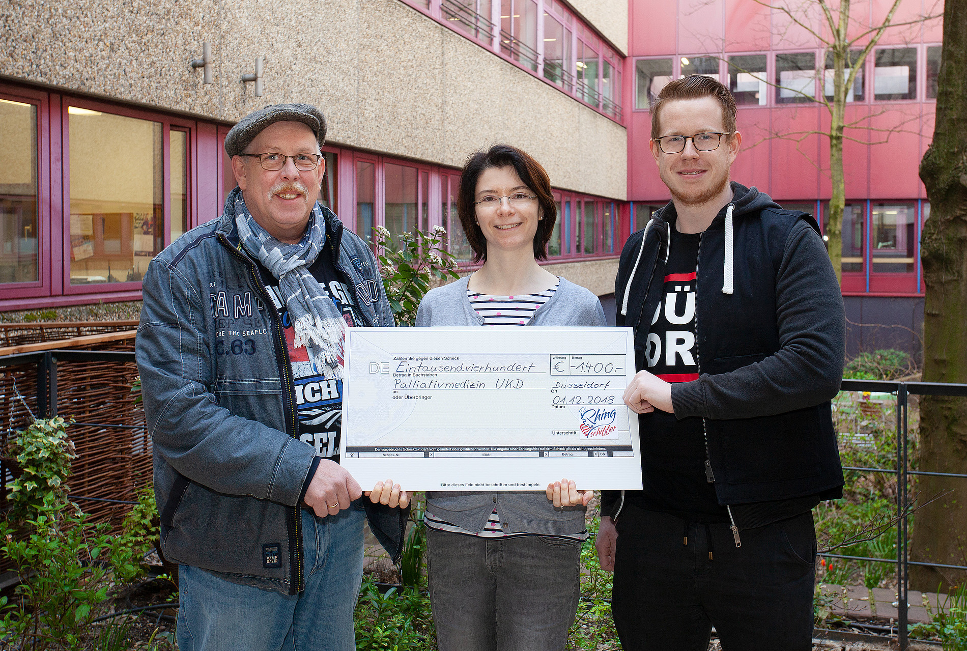 Am Samstag, dem 14. Januar 2017 gab es auf den Fluren des IZPs und sogar in einigen ausgewählten Patientenzimmern ein kleines Konzert der „Rhingschiffer“. Die Band um Willi Hamacher, der im UKD im technischen Service beschäftig ist, ermunterte die Patienten der Palliativstation und deren Angehörige mit stimmungsvollen Oldies und fetziger Karnevalsmusik. "De Rhingschiffer" ist eine im Jahr 2014 gegründete Mundartband. Das Programm der „Rhingschiffer“ besteht überwiegend aus eigenen Stücken, die zum Feiern und Mitsingen animieren. Des Weiteren haben „De Rhingschiffer“ angekündigt, weitere Benefizkonzerte zugunsten des IZPs zu veranstalten. Unter anderem soll am 16. Juni 2017 um 19 Uhr ein Benefizkonzert von „Rhingschiffer & Friends“ im Kolpingsaal auf der Bilkerstrasse stattfinden. An diesem Abend treten außer den „Rhingschiffern“ noch eines der führenden Fanfarencorps Düsseldorfs die „Rheinfanfaren“, die Pipes and Drumband „Sassan Celtics“, die 70er Jahre Rockband „Neusser Basementband“ und die Sambatrommelformation „Pimenta Malagueta“ auf. Das IZP bedankt sich sehr herzlich für die tolle Unterstützung und die vielen lächelnden Gesichter während des Konzertes auf der Palliativstation.