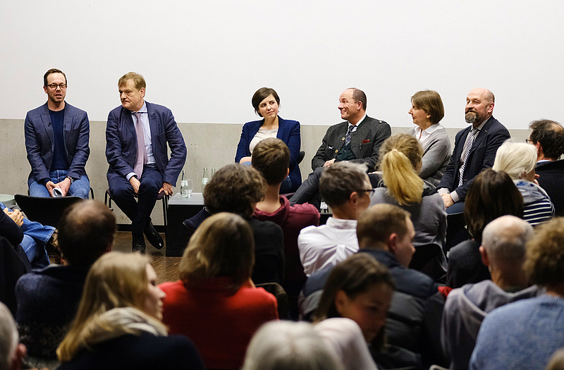 An der anschließenden Podiumsdiskussion nahmen neben Professor Roser auch Professor Dr. Tanja Fehm (Direktorin der Klinik für Frauenheilkunde und Geburtshilfe), Professor Dr. Rainer Haas (Klinik für Hämatologie, Onkologie und Klinische Immunologie), Dr. Thorsten Trapp (stellvertretender Vorsitzender des klinischen Ethikkomitees und Medizinethiker am UKD) und Frau Dorothee Halfkann teil. Durch den Abend führte Jascha Habeck, Dipl. Sozialpädagoge und Radiojournalist (Westdeutscher Rundfunk).