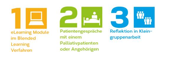 Ein didaktisches Element des eLearning-Kurses ist der Einsatz von Virtuellen Simulierten Patienten (VSP). Bei VSP wird an die etablierte didaktische Methode des Simulations-Patienten-Kontaktes (SPK) angelehnt. Die Lehre mit virtuellen Simulationspatienten führt im Kontext der Palliativmedizin dazu, dass viele Möglichkeiten geschaffen werden, sterbende Menschen und ihre Angehörigen zu erleben und fördert über das Modelllernen und das distanzierte Lernen die Motivation, sich mit dem schwierigen Thema "Tod und Sterben" auseinanderzusetzen.