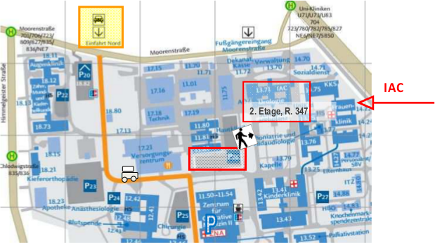 So finden Sie uns: Die Ambulanz befindet sich im Interdisziplinären Ambulanten Chemotherapiezentrum (IAC), Gebäude 13.71, 2. Etage, Raum 347 | Hier ist der Lageplan. Weitere Informationen finden Sie hier: https://www.uniklinik-duesseldorf.de/patienten-besucher/als-patient-am-ukd/anreise-anfahrt-und-lageplan