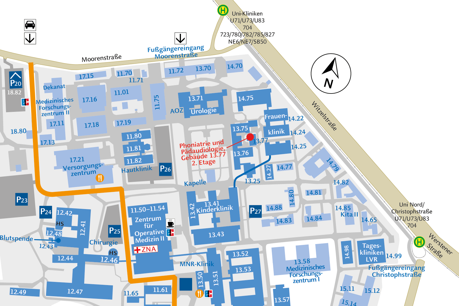 Sie finden uns in der 2. Etage im Gebäude 13.77 gegenüber der Frauenklinik.