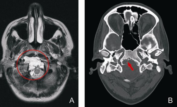 Chordome sind extrem seltene Tumore (1 / 1.000.000 Einwohner). Sie bilden sich während der Embryonalentwicklung aus der sog. Notachorda („Urwirbelsäule“). Daher treten sie an beiden Extremitäten der Wirbelsäule auf: entweder am Kopf-Hals Übergang (Kranio-zervikaler Übergang) oder am Kreuzbein (Os sacrum). Durch langsames und infiltrierendes Wachstum zeigen sie sich meist im jungen Erwachsenenalter. Typische Symptome sind Kopf-, Nacken- bzw. Kreuzschmerzen sowie neurologische Ausfälle (Doppelbilder, Schluckstörung, Lähmung bzw. Taubheit). Diagnostiziert werden sie durch CT und MRT.