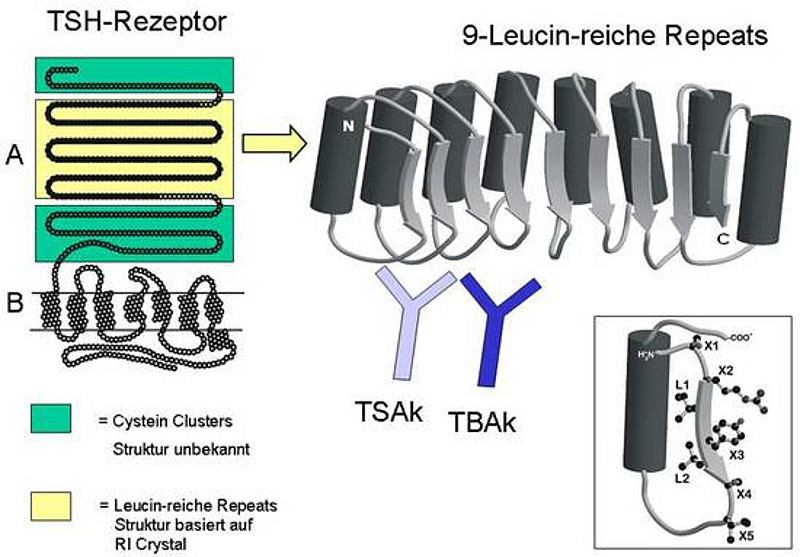 In unserer Arbeitsgruppe werden verschiedene Studien zur Pathogenese, Diagnostik und Therapie von autoimmunen Schilddrüsenerkrankungen durchgeführt. Wesentliche Arbeiten beschäftigten sich mit Stellenwert der TSH-Rezeptor-Autoantikörper (TRAK) -Bestimmung für die Diagnostik und Prognoseabschätzung des Morbus Basedows. Hierzu wurden eine Vielzahl an Studien durchgeführt. In einer aktuellen Studie (2019) wurde der Stellenwert eines Immunassays für die Detektion von möglichen stimulierenden TRAK untersucht.
