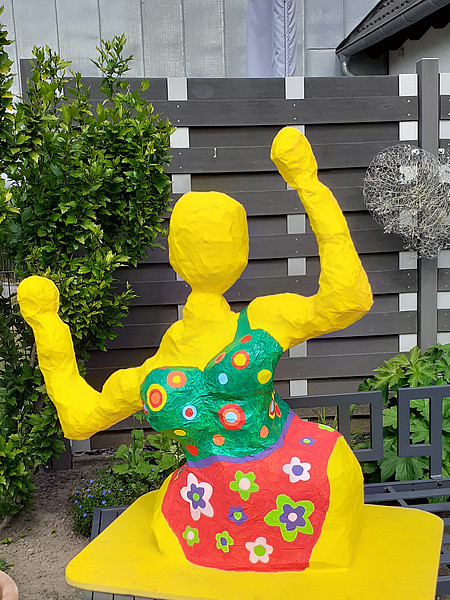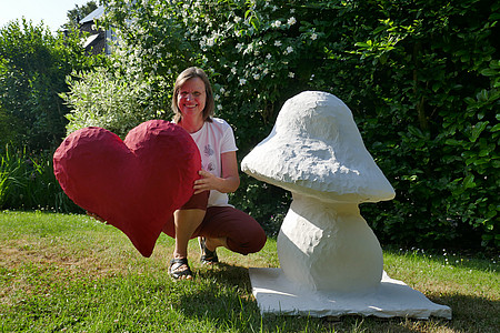 „Mir hat dieser Workshop sehr viel Freude bereitet. Die Besichtigung der Wagenhalle mit den Karnevalswagen hat mich beeindruckt. Der meiste Spaß hat mir die praktische Arbeit beim Erstellen der Großplastik gemacht. Dabei war ich voll in meinem Element und am besten hat mir gefallen, einen goßen Pilz aus Drahtgeflecht herzustellen. Am Ende war ich stolz auf mein Geschaffenes. Nachdem ich anfangs etwas aufgetauen musste, haben wir uns innerhalb der Gruppe auch ausgetauscht. Ich konnte in dieser Zeit alles andere vergessen und mich es hat mich positiv gestärkt. Aber auch die anderen Teilnehmer waren alle sehr nett und wir haben uns bei der Herstellung der Plasiken gegenseitig geholfen.“- Heike