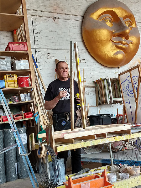 Nicht nur in Düsseldorf, sondern auch weit darüber hinaus ist er bekannt: Der Karnevalswagenbau-Künstler Jacques Tilly. Im Mai 2023 organisierte der gelernte Bildhauer und Kommunikationsdesigner zusammen mit der Krebsberatungsstelle für Krebsbetroffenen einen Workshop.