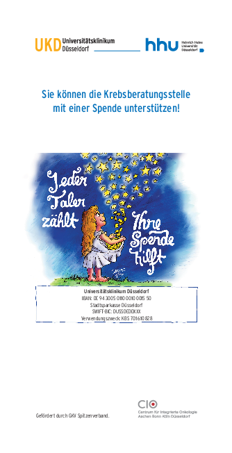 Auch Sie können dazu Ihren Beitrag leisten, die Krebsberatungsstelle finanziell zu unterstützen: