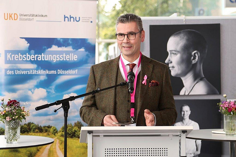 Prof. Ruckhäberle sprach als stellvertretender Direktor der Frauenklinik am UKD von seinen Eindrücken von Patientinnen mit Brustkrebs und während einer Chemotherapie.