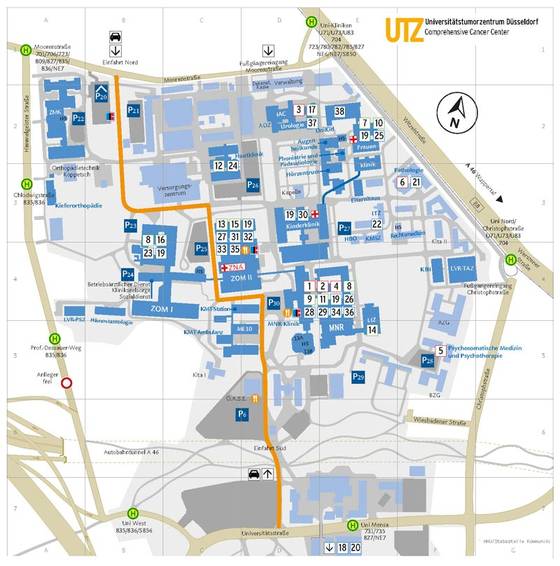 Das Universitätstumorzentrum / CIO Düsseldorf wird durch das Engagement der Kliniken und Einrichtungen des Universitätsklinikums Düsseldorf unterstützt. Die Organkrebszentren am CIO Düsseldorf bieten besondere Expertisen und eine klinikübergreifende Behandlung. Direkt zum CIO Düsseldorf gehören die sogenannten zentralen Komponenten, die auch von den Kliniken und Instituten des Universitätsklinikums genutzt werden.