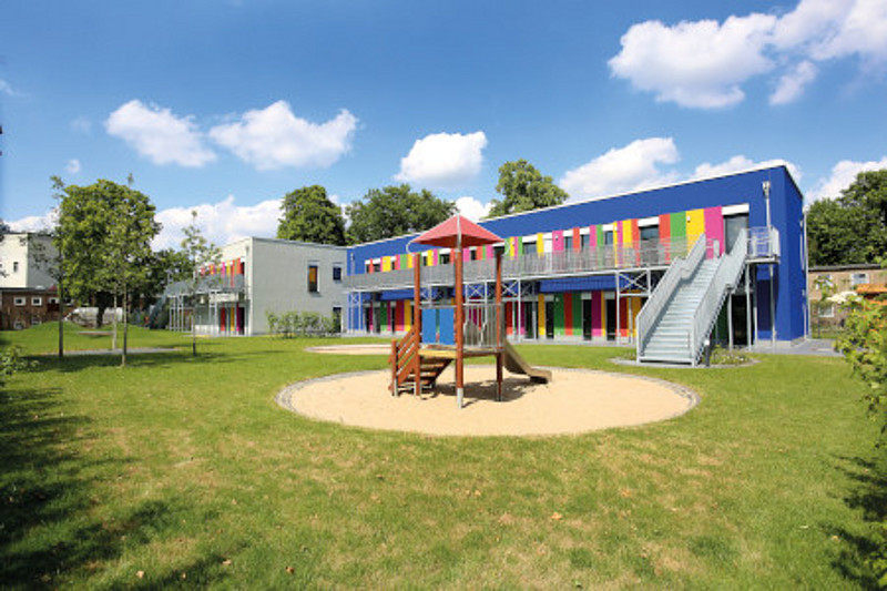 In nur wenigen Wochen Bauzeit wurde im Sommer 2019 auf dem Campus des Universitätsklinikums Düsseldorf (UKD) ein Gebäude in besonders schnell umzusetzender Modulbauweise zur Versorgung von COVID-19-Patientinnen und Patienten erbaut. Als eine der modernsten Intensiveinheiten Europas entstand eine räumlich vollständig getrennte Einheit von Intensiv- und IMC-Betten zur Versorgung der Infektionspatienten. 97 Baumodule sind verbaut worden. Entstanden sind ca. 5.200 qm Bruttogeschossfläche. Das neue Gebäude ist im 1. OG über einen Skywalk an das Zentrum für Operative Medizin II (ZOM II) angebunden, in dem auf gleicher Ebene eine weitere Intensivstation lokalisiert ist.