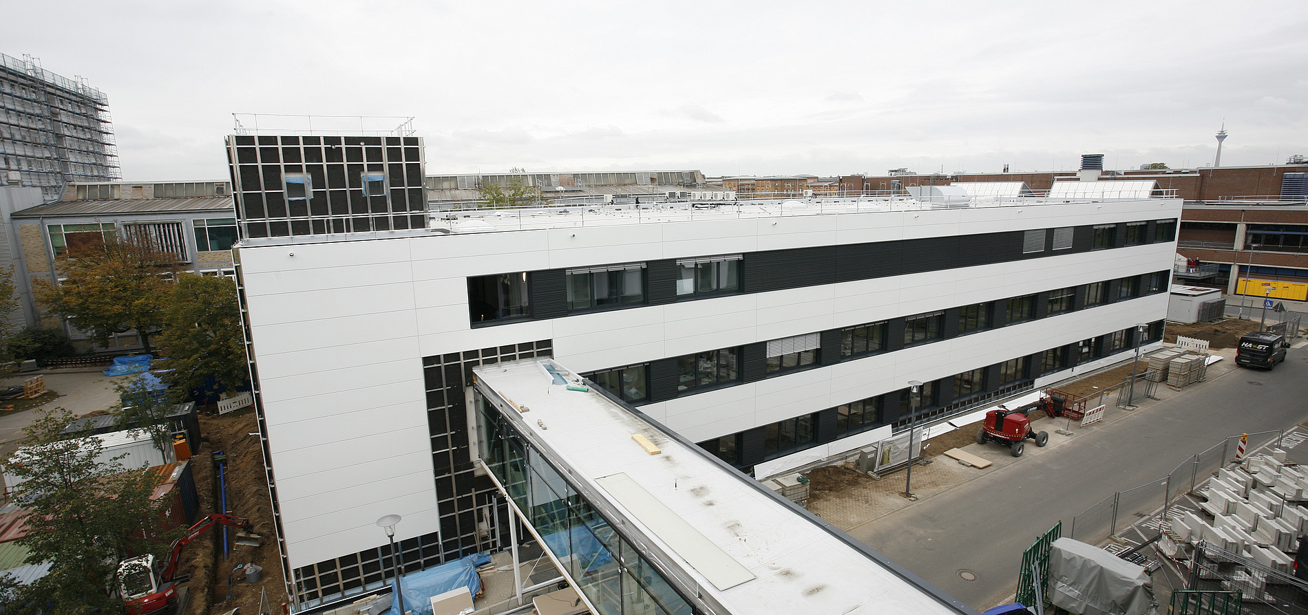 Auf dem Gelände des Universitätsklinikums Düsseldorf im Bereich der Vorklinik ist ein Forschungsneubau entstanden - das Zentrum für Synthetische Lebenswissenschaften Düsseldorf (ZSL). Die Lebenswissenschaften vereinen Disziplinen aus Naturwissenschaften und Medizin. Diese Verbindung vor allem in der Grundlagenforschung zu stärken, war der Leitgedanke des gemeinsam von der Medizinischen und der MathematischNaturwissenschaftlichen Fakultät sowie dem UKD getragenen Forschungszentrums. Der Zweck des Neubaus ist es, die lebenswissenschaftliche Spitzenverbundforschung als interaktive und interdisziplinäre Einheit der beiden Fakultäten zu fokussieren und dadurch Synergien zu genieren, die den Standort fördern und darüber hinaus überregionale und internationale Wirkung entfalten. Das ZSL ist ein bundesweit sichtbares Leuchtturmprojekt der Universität und des Universitätsklinikums Düsseldorf: Sein hochmodernes Design schafft optimale Voraussetzungen, um neue Fragestellungen der Pflanzenforschung sowie der medizinischen Forschung zu vereinen.