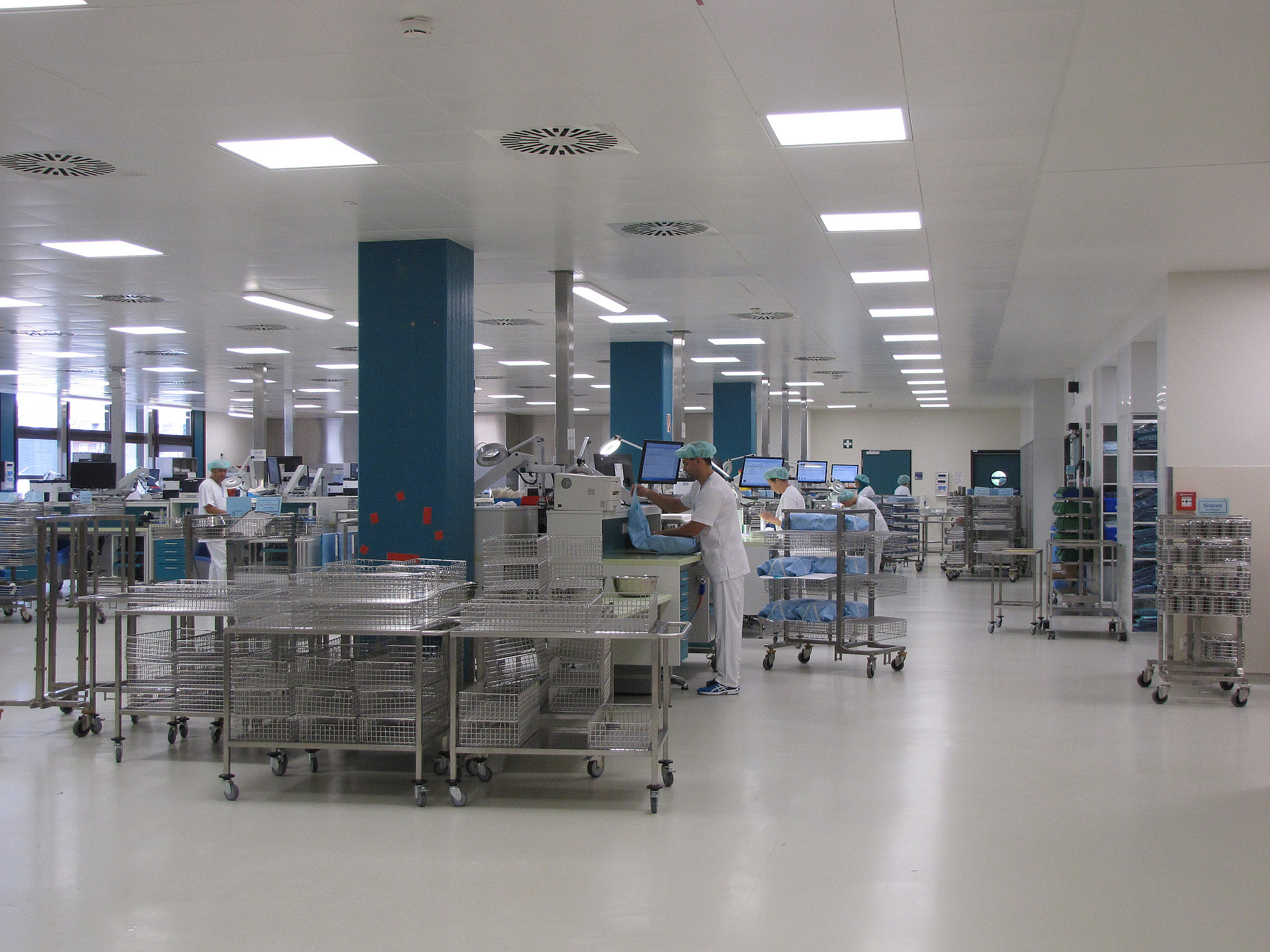 Die Zentrale Großraumsterilisation des Universitätsklinikums Düsseldorf wurde dank einer umfassenden Sanierung auf den neuesten Stand der Technik gebracht und an die bauliche Masterplanung angepasst. Bei gleichbleibenden Betriebszeiten und unter Beibehaltung des zur Verfügung stehenden Raumes wurde eine Produktionssteigerung der Sterilguteinheiten um rund 25 Prozent von 72.000 auf 90.000 Stück ermöglicht. Ein Sieb mit OP-Besteck ist nun im Normalfall innerhalb weniger Stunden wieder einsatzbereit. Die Sanierung startete 2015 und umfasste mehrere Bauabschnitte unter strengsten Hygienestandards.