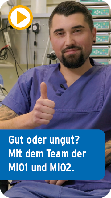 Der hohe Standard des Einarbeitungskonzeptes sorgt für einen leichten Einstieg und erlaubt eigenverantwortliches Arbeiten auf Augenhöhe mit dem Ärzte-Team. Mehr zur Tätigkeit auf der internistischen Intensivstation erfahren Sie direkt vom Pflegeteam, das in unserem Film zu Wort kommt.