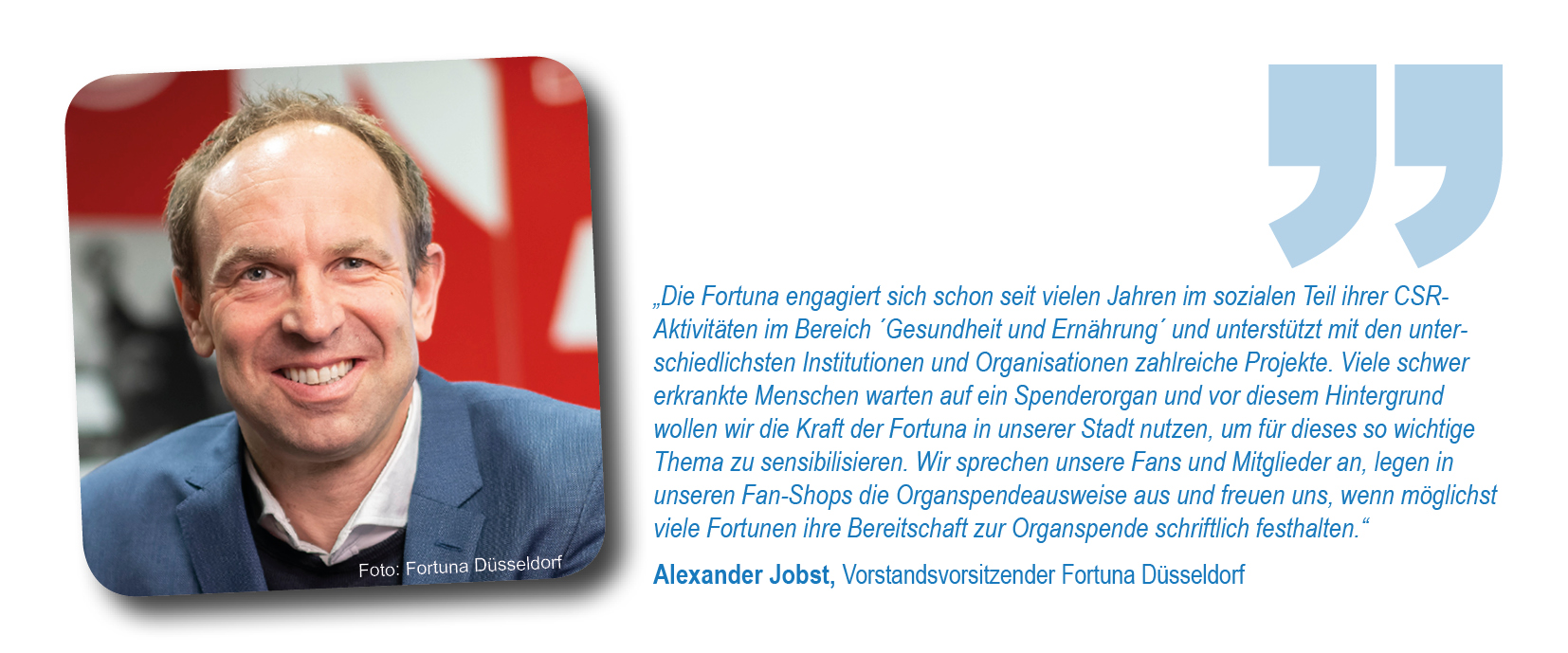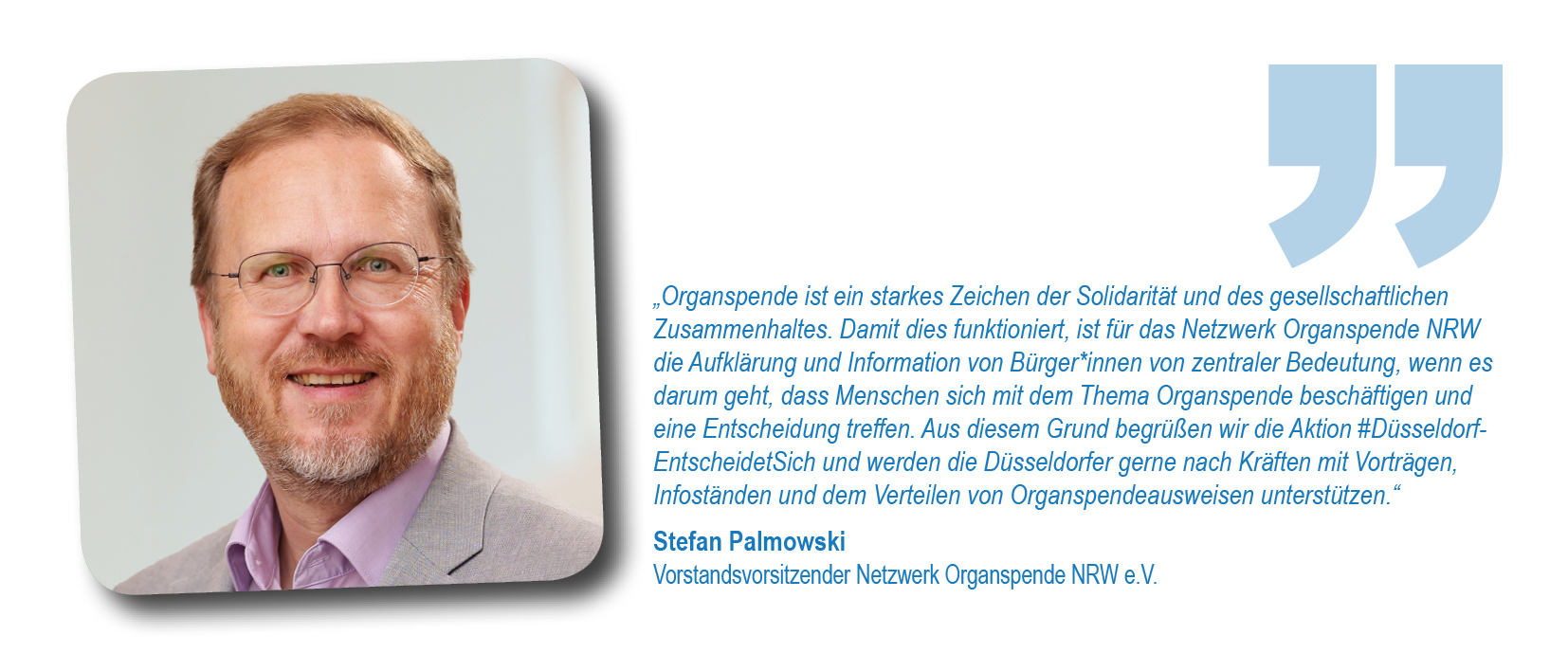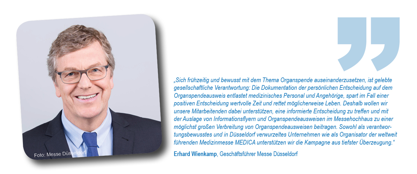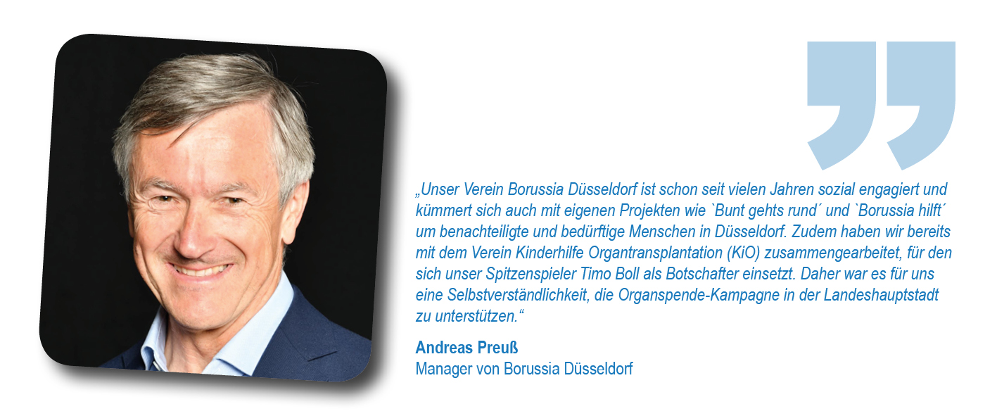 Als Initiatoren hatten sich Düsseldorfer Krankenhäuser, die Stadt Düsseldorf, die Deutsche Stiftung Organtransplantation (DSO) sowie das Netzwerk Organspende NRW e.V. zusammengetan, um im besten Fall die ganze Stadt davon zu überzeugen, eine Entscheidung zu treffen und diese im Organspendeausweis zu dokumentieren. Schirmherr war Düsseldorfs Oberbürgermeister Dr. Stephan Keller. Unterstützt wurde das Anliegen gleich zu Beginn von Initiativpartnern aus den Bereichen Medizin, Sport, Unternehmen und Brauchtum: der Kassenärztlichen Vereinigung Nordrhein, Borussia Düsseldorf, der Rheinbahn und dem Comitee Düsseldorfer Carneval.