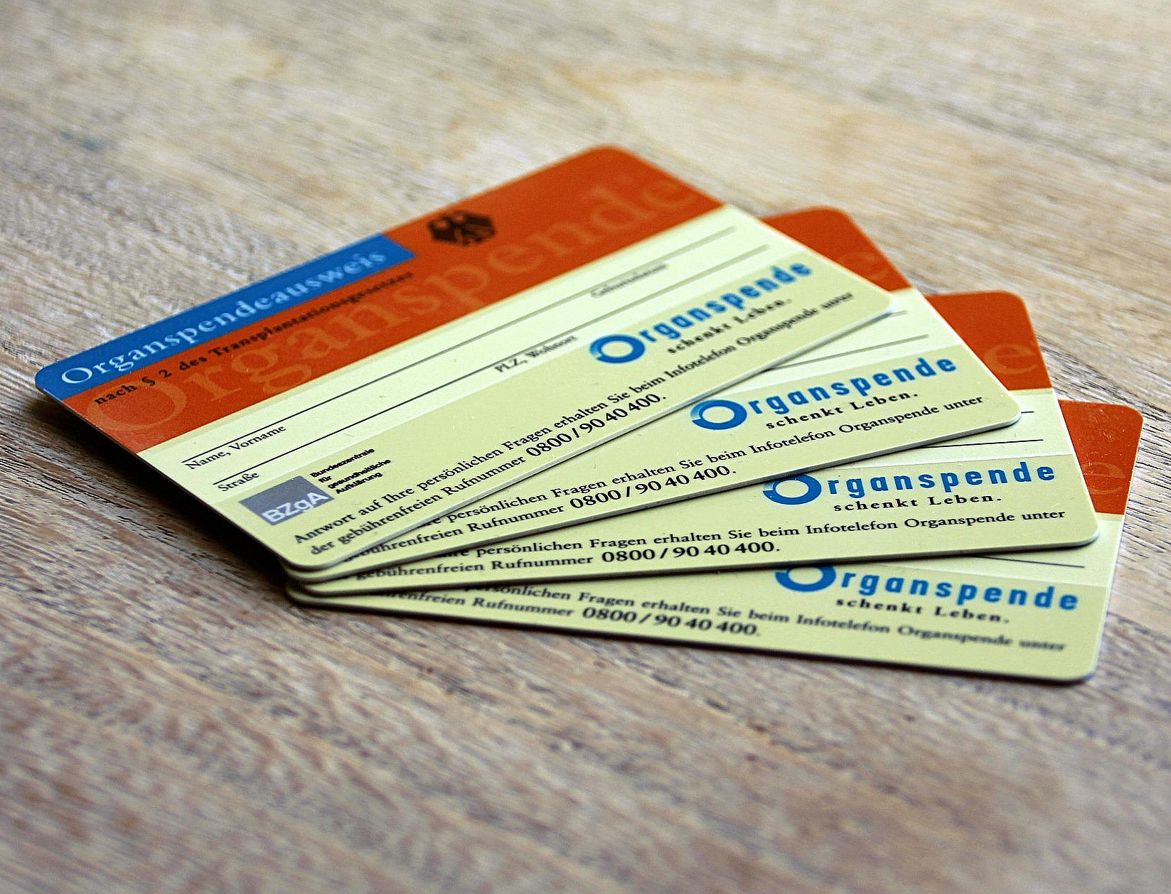 Eine Registrierung von Daten im Zusammenhang mit der Bereitschaft zur Organspende findet nicht statt. Es existiert in Deutschland auch kein Widerspruchsregister (Eintragung der Ablehnung). Deshalb ist es wichtig, die eigene Entscheidung auf einem Organspendeausweis festzuhalten und mit der Familie darüber zu sprechen.
