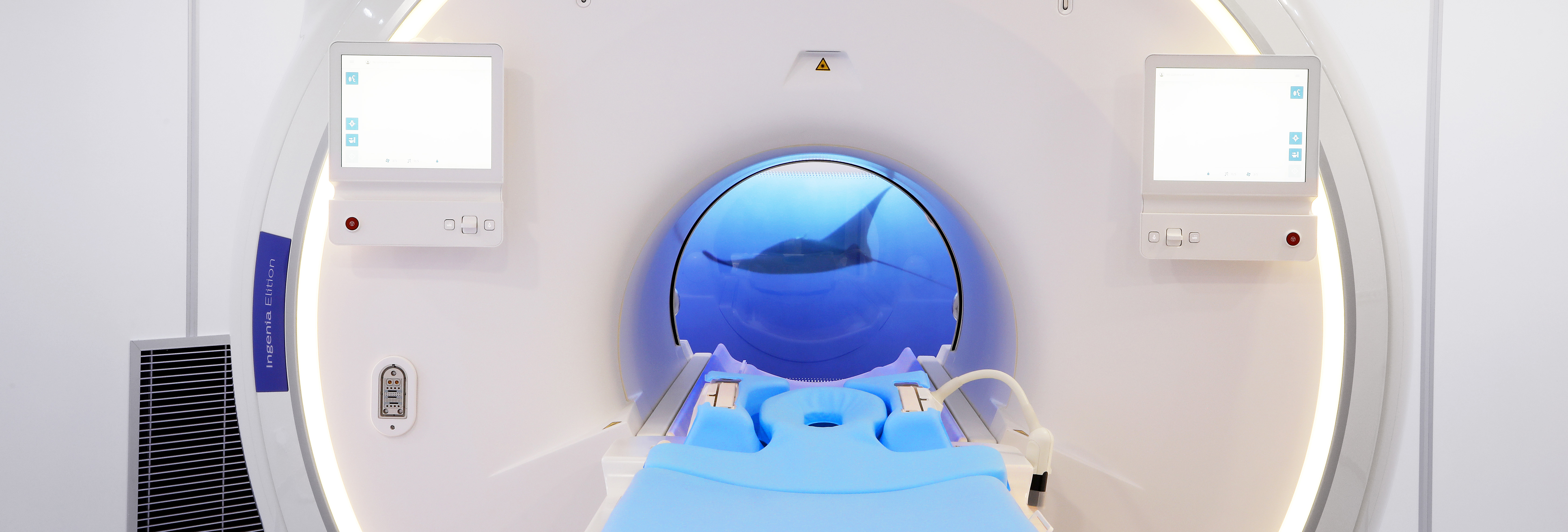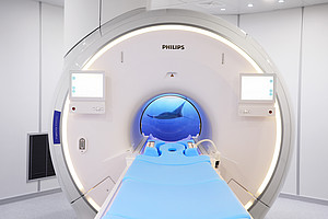 Neben seiner verbesserten Bildqualität und der kürzeren Durchlaufzeit, gibt es noch weitere Ausstattungsdetails, die dabei helfen, die Bildaufnahme – und damit die Aufenthaltszeit der Patientinnen und Patienten in der MRT-Röhre zu verkürzen. Dazu gehört auch eine regulierbare Licht- und Farbgestaltung. Konkret bedeutet das, das neben einem beruhigenden Licht auch beruhigende Videosequenzen – zum Beispiel Landschaftsaufnahmen oder ähnliches - eingespielt werden können. „Das steigert zusätzlich den Patientenkomfort und hilft dabei, sich in dieser besonderen Situation zu entspannen. Das kann die Zeit in der Röhre auch deutlich verkürzen,“ freut sich Dr. Mareike Cramer, Oberärztin und Leiterin der kardialen Magnetresonanztomographie.