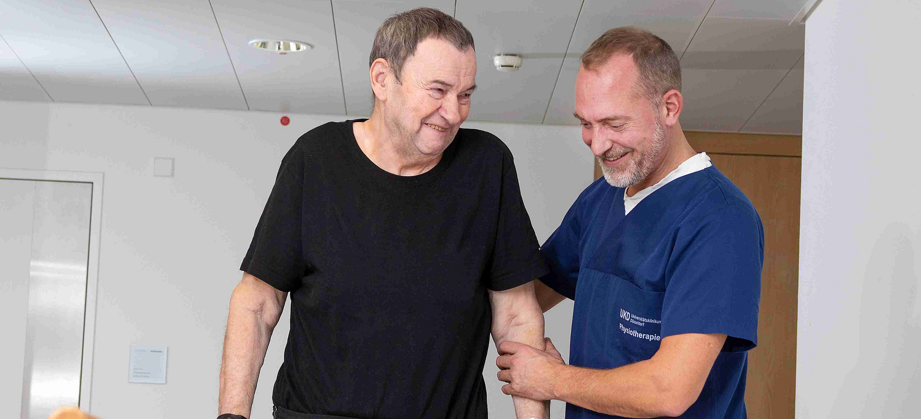 Die Therapeut:innen für Logopädie und Physiotherapie begleiten Patient:innen am UKD während des stationären Aufenthaltes auf dem Weg zu mehr Selbstständigkeit und Lebensqualität. Unser Ziel ist es, vorhandene Fähigkeiten zu erhalten, verlorene Funktionen wiederherzustellen und individuelle Ressourcen zu stärken. In enger Zusammenarbeit mit anderen Fachrichtungen beziehen wir die Patient:innen aktiv in den Therapieprozess ein – denn nachhaltiger Behandlungserfolg entsteht im Team und mit der aktiven Mitwirkung der Betroffenen.