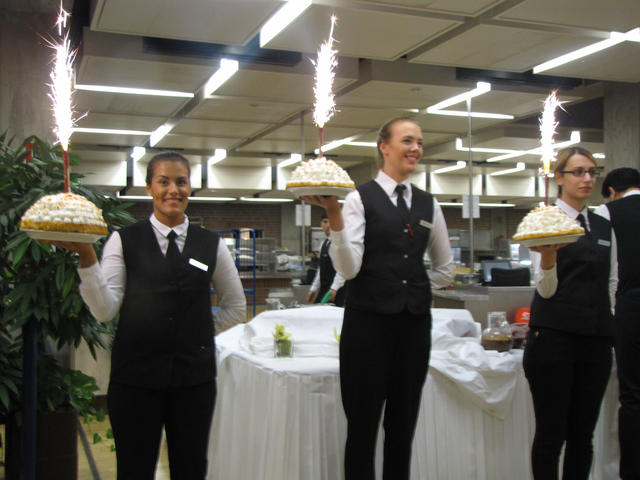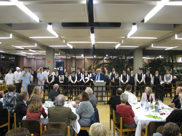 200 Jubilarinnen und Jubilare des UKD und der HHU feierten gemeinsam ihre 25 oder 40-jährige Betriebszugehörigkeit in der extra dafür hergerichteten Personalkantine. Herr Dr. Martin Goch, Kanzler der HHU und Herr Prof. Dr. Benedikt Pannen, stellvertretender Ärztlichen Direktors des UKD würdigten die Leistungen und das Engagement der Jubilare. Moderiert wurde der Abend von Herr Thorsten Celary, stellvertretender Kaufmännischer Direktor. Für das leibliche Wohl der Gäste sorgten, unter der Leitung von Herrn Peter Schröder (UKM), ein Team aus sechs Köchen sowie, unter der Leitung von Herrn Oleksandre Rodionov (UKM), 16 Servicemitarbeiter die einen einmaligen Abend mit Sektempfang, Flying Buffet, Sieben-Gänge-Menü, Showkochen und einem Nachtisch à la Traumschiff u.v.m. präsentierten.