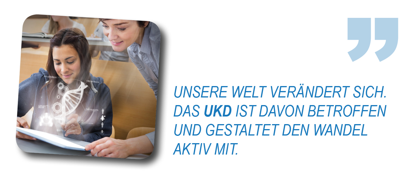 Auf dieser Seite stellen wir die wichtigsten Inhalte der Strategie vor. So soll ein Eindruck entstehen, an welchen Zielen sich das UKD für die Gegenwart und Zukunft orientiert.