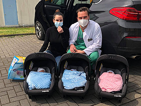 Mit dabei auch schon Drillinge. Mirzana und Arben Islami, die Eltern der drei Babys, sind dem Team der Geburtshilfe und Kinderklinik sehr dankbar: „Ein großes Lob geht an die liebevollen Mitarbeiterinnen und Mitarbeiter in der Frauenklinik, die sehr nett und fürsorgevoll waren und alle ihre Arbeit mit hoher Professionalität ausgeführt haben. Ein weiterer spezieller Dank geht an das Team der Kinderklinik, die sich um unsere Kinder elf Tage lang gekümmert hat. Dank deren Fürsorge haben wir unsere drei schnell nach Hause bekommen.