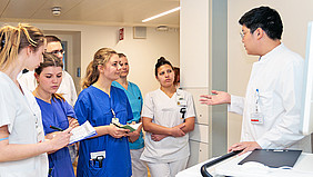 Projektleiterin Doris Strauch, systemische Coachin am UKD-Bildungszentrum, zeigte sich sehr zufrieden mit dem Verlauf der dreiwöchigen Übernahme durch den ärztlichen und pflegerischen Nachwuchs auf der Station ME06: „Eine interprofessionelle Ausbildungsstation will im Team erarbeitet sein. Die Teilnehmenden haben unter Beweis gestellt, dass dies mit guter Kooperation unter den Berufsgruppen gelingen kann.“ Die PJ-Studentin Paula Braun betont den Lerneffekt: „In ganz vielen Hinsichten haben wir uns alle weiterentwickelt – sowohl fachlich als auch persönlich.“