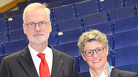 Prof. Schneider wiederum lenkte den Blick auf die Beschäftigten, die für ihn dieses Klinikum zu etwas Besonderem machen: „Es waren tolle Jahre hier und wir haben hier gemeinsam viele Krisen gemeistert. Auch die notwendigen Verbesserungen im Tagesgeschäft konnten einvernehmlich an vielen Stellen vorgenommen werden. Ich wünsche Frau Prof. Schmieder viel Erfolg am UKD.“ Prof. Schneider wurde mit Standing Ovations verabschiedet.