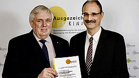 Düsseldorf (ukd/dre). Starker Qualitätsbeweis für die Düsseldorfer Uniklinik: NRW-Gesundheitsminister Karl-Josef Laumann hat der Kinderklinik des Universitätsklinikums Düsseldorf (UKD) erneut das Gütesiegel „Ausgezeichnet. Für Kinder.“ verliehen. Das Qualitätssiegel ist gültig für die Jahre 2018 und 2019.