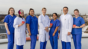 Fünf auf einen Streich! Gleich fünf Absolventinnen des jüngsten Ausbildungsjahrgangs der MTA-Schule an der Uniklinik Düsseldorf haben sich dazu entschieden, ihren Berufsweg in den Herzkatheterlaboren (HKL) der interventionellen Kardiologie des UKD zu beginnen. Hier können sie im wahrsten Sinne des Wortes mit viel Herz an die Arbeit gehen.