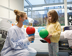 „Die Kinder werden in der Regel einzeln therapiert, um der individuellen Situation gerecht zu werden“, sagt Dr. Schuster. „Wir bieten aber an, dass die Eltern, die ihr Kind teilweise wochenlang im Krankenhaus begleiten, ebenfalls mitmachen können.“