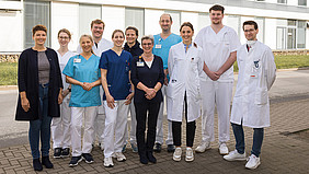 Düsseldorf (ukd/joe) - Die Interprofessionelle Düsseldorfer Ausbildungsstation (IDA) ist an der Uniklinik Düsseldorf seit einigen Monaten fest etabliert. Hier sind Auszubildende der Pflege und Medizinstudierende im Praktischen Jahr (PJ) unter Anleitung gemeinsam für Patientinnen und Patienten verantwortlich – bislang unter dem Dach der Kinderklinik. Nun konnten sich die Nachwuchskräfte zum ersten Mal auf der rheumatologischen Station ME04 beweisen. Dieses Mal beteiligten sich erstmals auch Auszubildende aus der Physiotherapie.