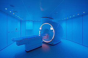 „MRTs sind für uns als Mediziner sehr wichtig, aber für die Patientinnen und Patienten können die Aufnahmen mit Unsicherheiten und Ängsten verbunden sein: So eine MRT-Röhre ist eng, es ist laut und damit man möglichst gute Bilder bekommt, darf man sich in der Regel nicht bewegen. Besonders für Menschen, die unter Platzangst leiden, kann das eine ziemliche Herausforderung sein und ausgerechnet in der Herzbildgebung dauern die Aufnahmen noch länger, weil man stillhalten und Atemkommandos befolgen muss. Unser neues MRT-Gerät hilft hier, weil die Röhre über einen größeren Durchmesser verfügt und ein eingebauter Bildschirm sowie unsere Lichtgestaltung eine beruhigende und auch ablenkende Wirkung haben.“, erklärt Dr. Mareike Cramer.