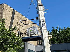 Um das tonnenschwere MRT-Gerät an seinen finalen Standort in der Uniklinik Düsseldorf zu bekommen, musste im Mai 2023 sogar ein Teil der Wand entfernt werden und das Gerät mit einem Spezialkran in den ersten Stock der MNR-Klinik gezogen werden. Insgesamt 30 Personen waren im Einsatz, um den Austausch der Geräte zu ermöglichen.