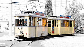 Mit einem historischen Straßenbahnwagen der Rheinbahn geht es auf Tour durch die ganze Stadt. Wer sich über das UKD informieren möchte, hat die Möglichkeit, einfach an einem der zahlreichen Haltepunkte zuzusteigen und das Gespräch zu suchen. An Bord sind Ansprechpartnerinnen und Ansprechpartner aus allen Departements. Bei Musik und einem Getränk ist ein entspannter Austausch über offene Stellen, das Arbeiten am UKD und persönliche Entwicklungschancen möglich.