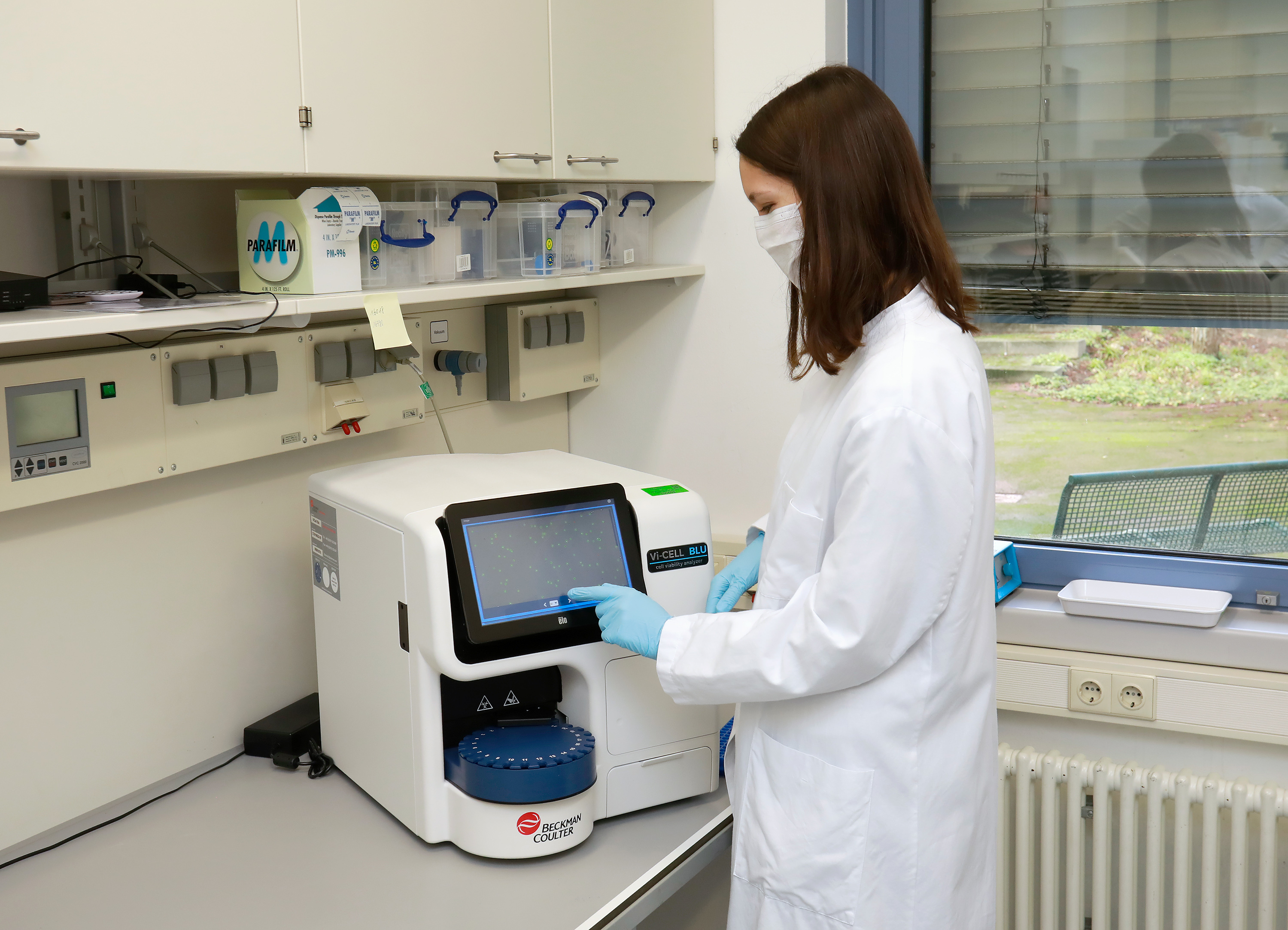 Das zweite Gerät ist ein sogenannter automatisierter Zellzähler, der die Anzahl und die Vitalität von Zellen in einer Flüssigkeit vollautomatisch misst. Im Labor wird dies benötigt, um Zellkulturen zu überprüfen. Zellzählungen sind die Grundlage vieler wichtiger Experimente im Labor für Kinder-Onkologie, -Hämatologie und Klinische Immunologie. Der Einsatz ist daher sehr vielfältig und betrifft Forschungsbereiche der Klinik, die sich zum Beispiel mit der Identifizierung neuer Möglichkeiten der Krebstherapie von morgen beschäftigen.