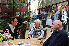 Neben den verschiedenen Angeboten der Station – von Klangtherapie bis zum Therapiehund – kann auch der spezielle Garten der Station besucht werden. Er wirkt mit vielen blühenden Pflanzen, einem kleinen Rasenstück sowie einem Brunnen wie eine Oase inmitten des Universitätsklinikums. „Für unsere Patientinnen und Patienten, aber auch für die Angehörigen und unsere Mitarbeiterinnen und Mitarbeiter ist er ein wichtiger Ort geworden“, so Dr. Martin Neukirchen, medizinischer Leiter der UKD-Palliativmedizin. Zusammen mit seinem Team ermöglicht er interessierten Besucherinnen und Besuchern beim Tag der offenen Tür einen Einblick in die besondere Behandlung und Betreuung von Patienten in ihrer letzten Lebensphase.