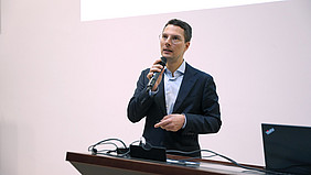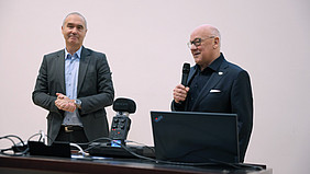 Christian Brandtner, Geschäftsführender Arzt der Deutschen Stiftung Organtransplantation (DSO) in der Region Nordrhein-Westfalen, lieferte nach einer Begrüßung durch Prof. Dr. Artur Lichtenberg, Direktor der Herzchirurgie, und Norbert Longerich, Selbsthilfe Organtransplantierter NRW, eine Übersicht über die Entwicklung der Organspendezahlen (965 im Jahr 2023) und zeigte klar die Vorteile einer Gesetzesänderung hin zur Widerspruchslösung auf.
