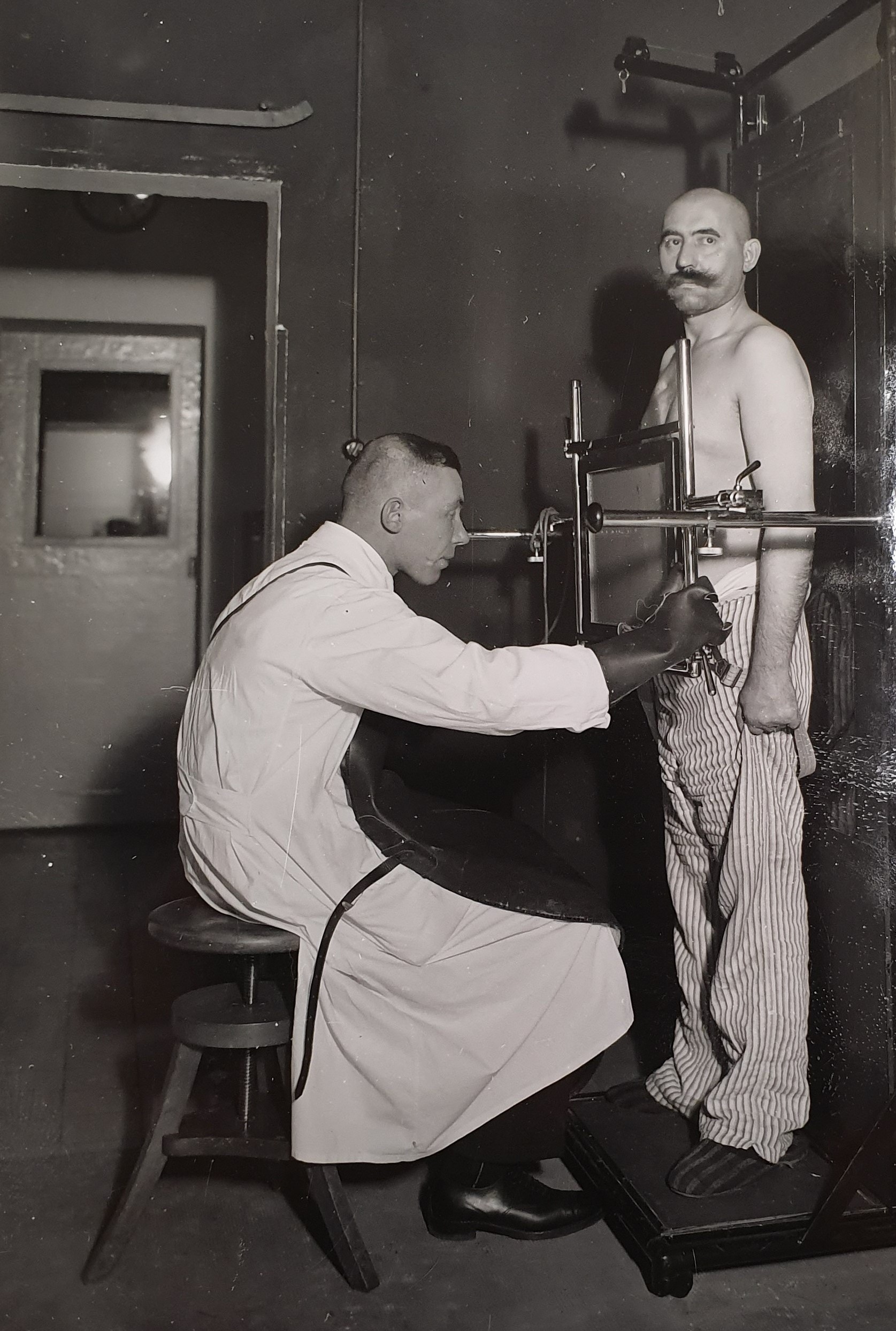 Geführt hat die Schüler und ihren Lehrer diese Suche von der Unibibliothek über das Universitätsarchiv hin zum Stadtarchiv Düsseldorf, das unter anderem die Personalakten der damaligen Städtischen Krankenanstalten verwaltet – dem Vorgänger der heutigen Uniklinik. Die Erkenntnis: Die Aufnahmen wurden mit Sicherheit angefertigt in der damals sogenannten „Medizinischen Klinik“ unter der Leitung des Geheimen Medizinalrats (eine preußische Bezeichnung für Lehrstuhlinhaber) Prof. Dr. August Hoffmann. In seiner Klinik wurden damals die meisten Thorax-Röntgenaufnahmen im Großraum Düsseldorf erstellt.