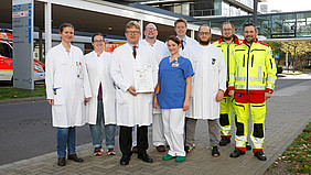Für den Rettungsdienst und die Bevölkerung der Umgebung ist die Struktur des Cardiac Arrest Centers, welches gemeinsam durch die Klinik für Kardiologie, Pneumologie und Angiologie, der Zentralen Notaufnahme und der Klinik für Anästhesiologie in enger Kooperation mit der Klinik für Herzchirurgie sowie weiteren Kliniken und Instituten gebildet wird, von besonderer Wichtigkeit. „Das alles funktioniert nur so gut, weil wir als Team funktionieren und so konnte auch die Zertifizierung gemeinsam gelingen“, fassen Prof. Dr. Michael Bernhard, Ärztlicher Leiter der UKD-Notaufnahme, und Prof. Dr. Peter Kienbaum, Stellvertretender Direktor der UKD-Klinik für Anästhesiologie zusammen.