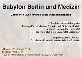Vortrag: Babylon Berlin und Medizin. Gesundheit und Krankheit in der Zwischenkriegszeit